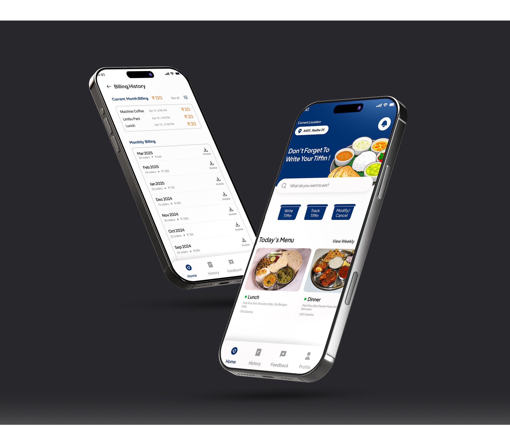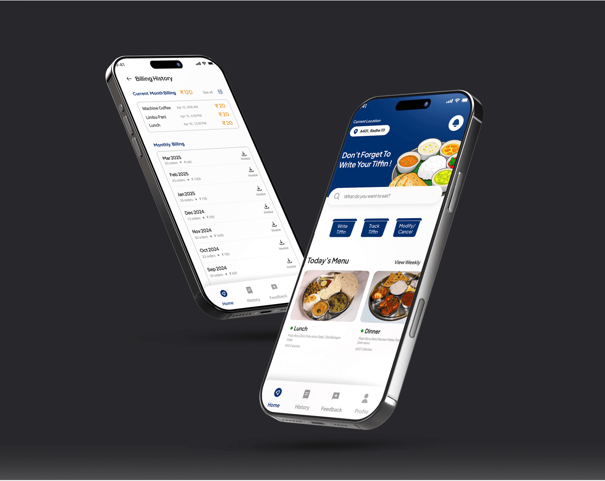 This app simplifies meal management for students, faculty, and canteen staff by addressing issues like manual errors, delayed orders, and lost tiffins—offering real-time updates, preference saving, and structured delivery tracking to make the canteen experience efficient and hassle-free for everyone involved.