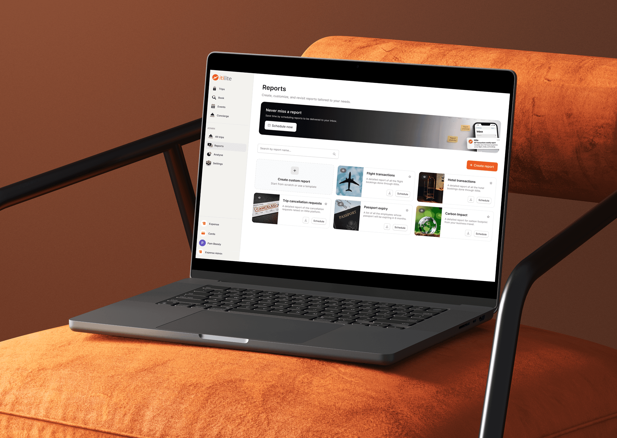 ITILITE is a travel and expense management platform serving thousands of corporate users. The existing reporting system was fragmented across multiple pages, making it difficult for finance teams to generate, customize, and schedule reports efficiently.